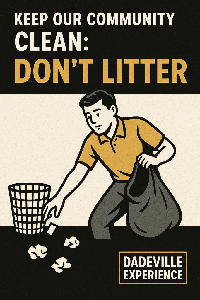 We love this town. From the sparkle of Lake Martin to the charm of our downtown streets, Dadeville has a way of making folks feel at home. That’s why it’s worth protecting — and yes, that includes picking up after ourselves.