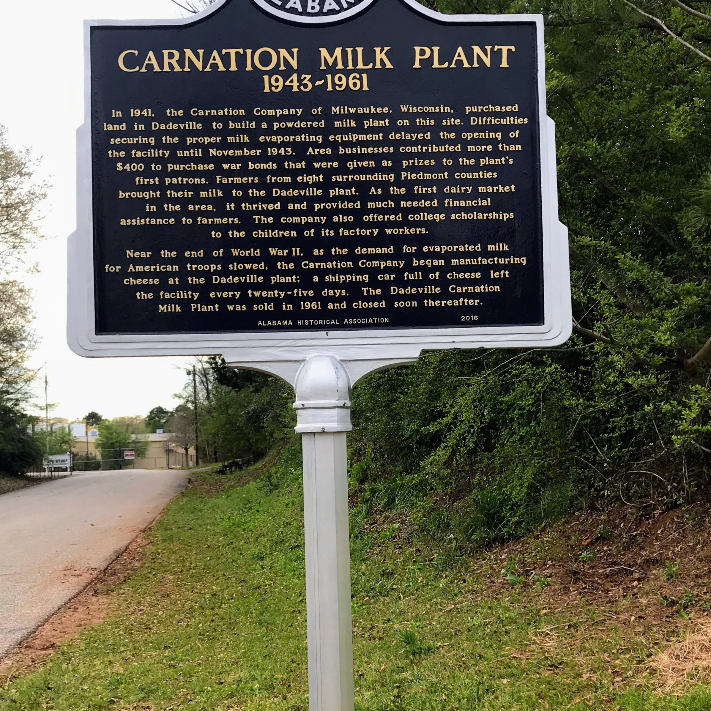 | In 1941, the Carnation Company of Milwaukee, Wisconsin, purchased land in Dadeville to build a powdered milk plant on this site. Difficulties securing the proper evaporating equipment delayed the facility’s opening until November 1943. | |||